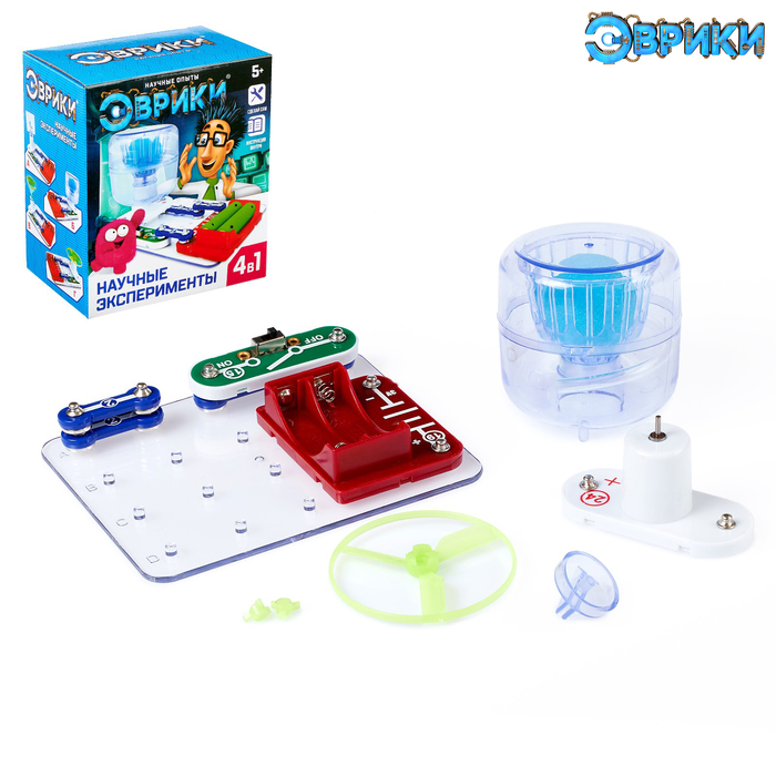 С помощью электронного конструктора ребёнок соберёт флуоресцентный вентилятор, тарелку, а также проведёт интересные эксперименты. В процессе юный изобретатель узнает, как работает сушильная машина и что такое инерция зрения.