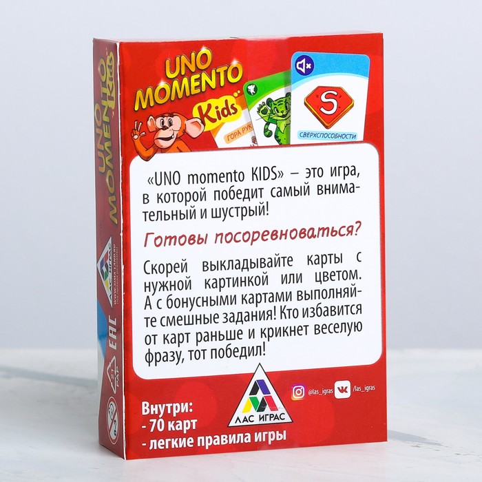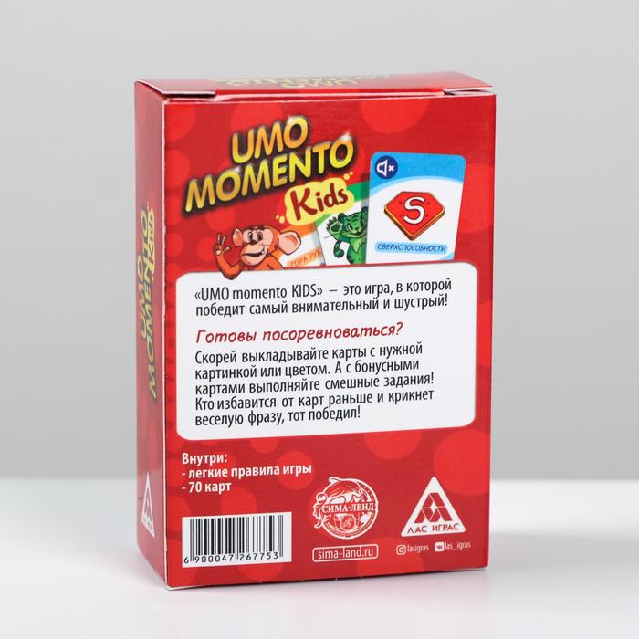 Перед вами увлекательная игра для самых внимательных и шустрых ребят. Яркие цвета, изображения забавных животных и весёлые задания — вот что делает UNO momento такой уникальной и смешной. В ней вам предстоит следить за изображениями на картах, выполнять забавные фанты и устроить настоящее соревнование на ловкость и внимательность. На старт, внимание, начали!