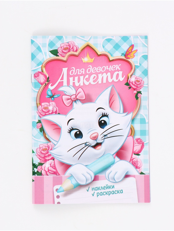 Анкета для девочек А5, 16 л + наклейки "Кошечка Мари"
