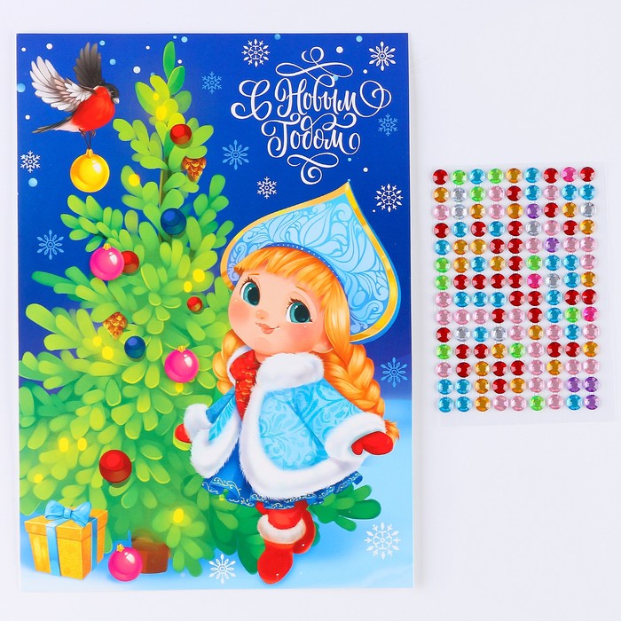 Аппликация стразами "Снегурочка" 14,8*21 см