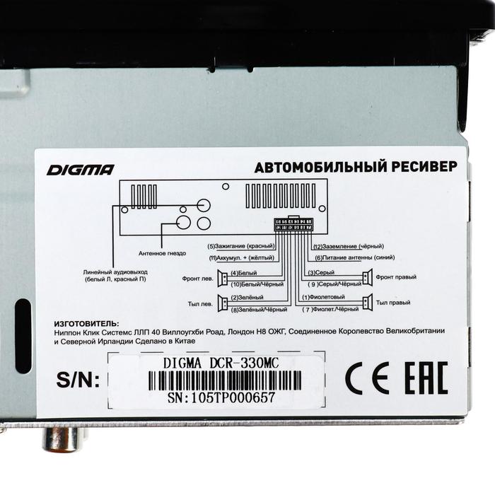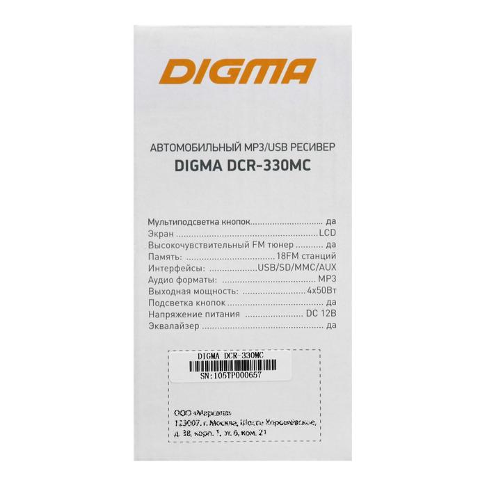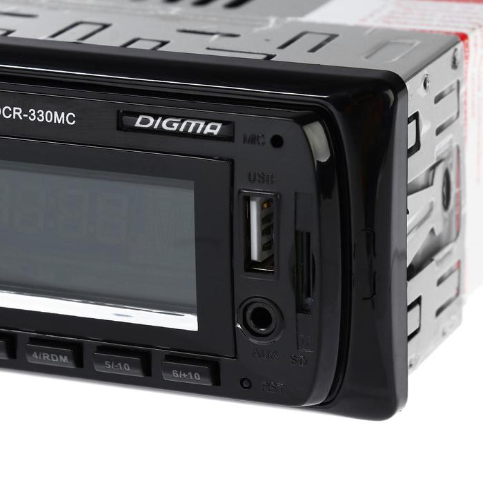 Еще автомагнитола DIGMA DCR-330MC оборудована эквалайзером для удобной настройки звучания, аудиовходом на передней панели и визуально-комфортным многоцветным дисплеем. Питание устройства осуществляется от бортовой сети напряжением 12 В. Радио тюнер работает в диапазоне FM волн и рассчитан на запоминание 18-ти станций, так что вы всегда сможете оставаться в курсе последних новостей и слушать новые хиты любимых исполнителей. Гарантия на устройство составляет 12 месяцев.