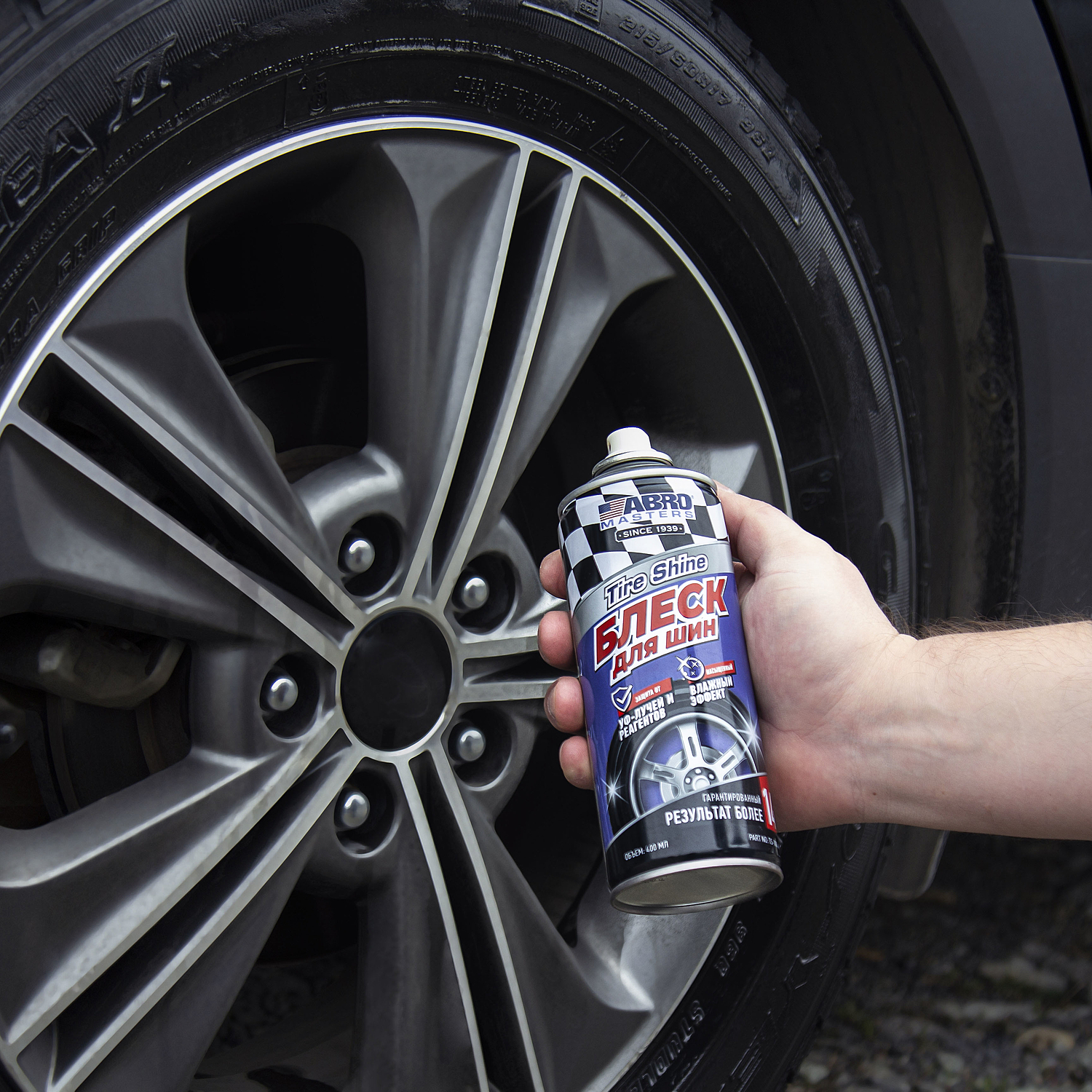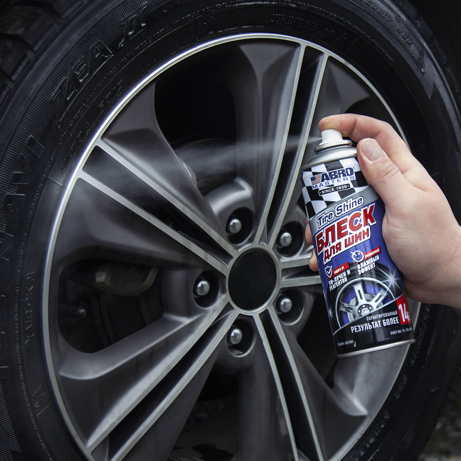 1. Хорошо встряхните баллон. Наносите средство на чистые, сухие шины.