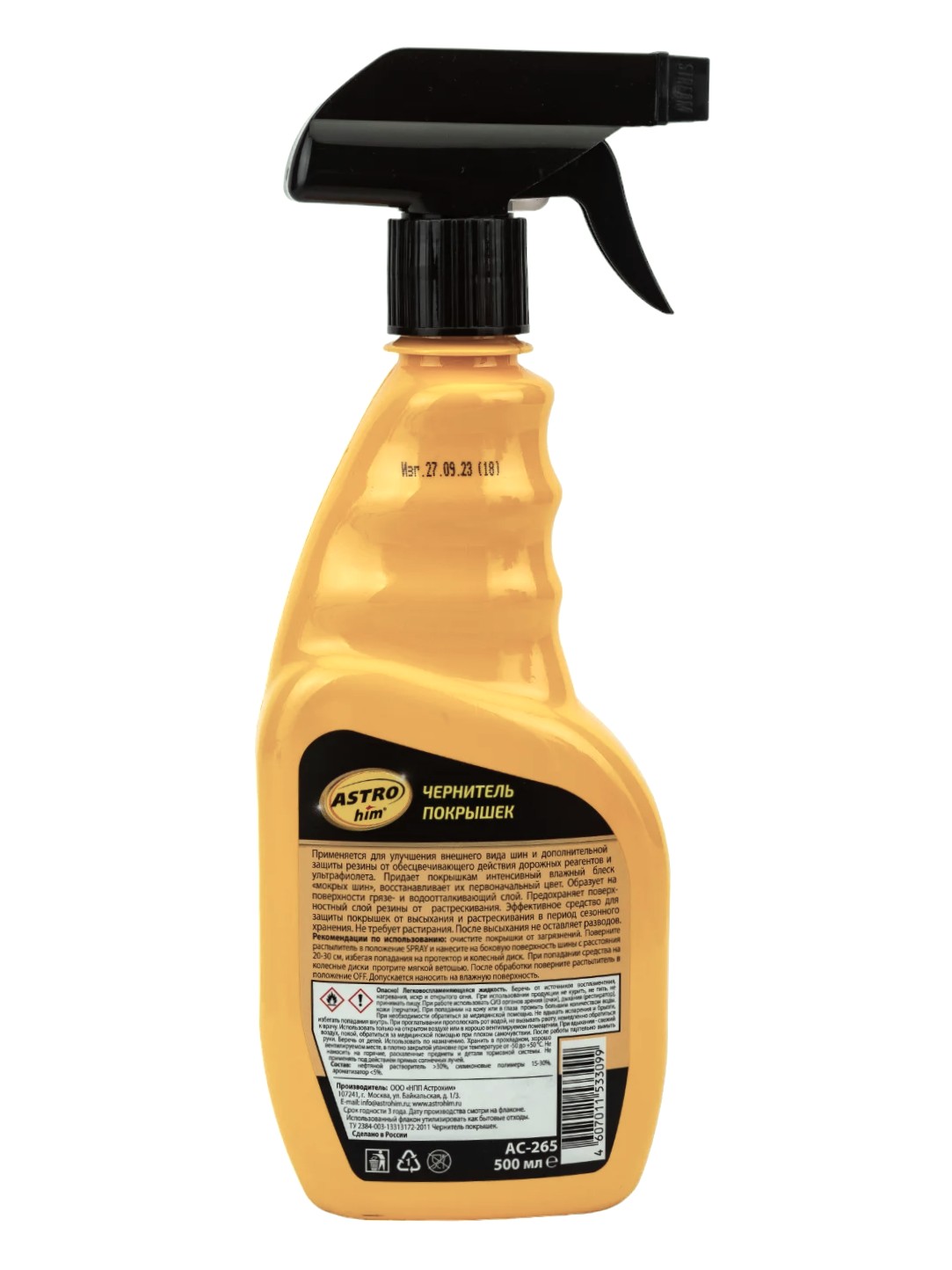 Чернитель покрышек от ASTROhim AC265 не содержит воды. Дело в том, что чернители шин, у которых в составе присутствует вода, быстрее смываются с поверхности. А все потому, что образуемая ими защитная пленка, менее устойчива к дождям и мойкам автомобиля.