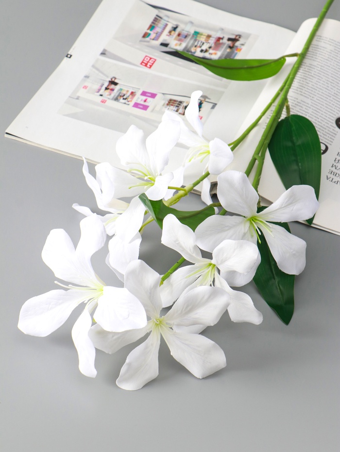 • Реалистичность текстильных цветов: Каждый цветок выполнен из качественного текстиля, который передает естественную форму и нежную фактуру лепестков баухинии. Белый цвет универсален и чисто смотрится в любой обстановке.