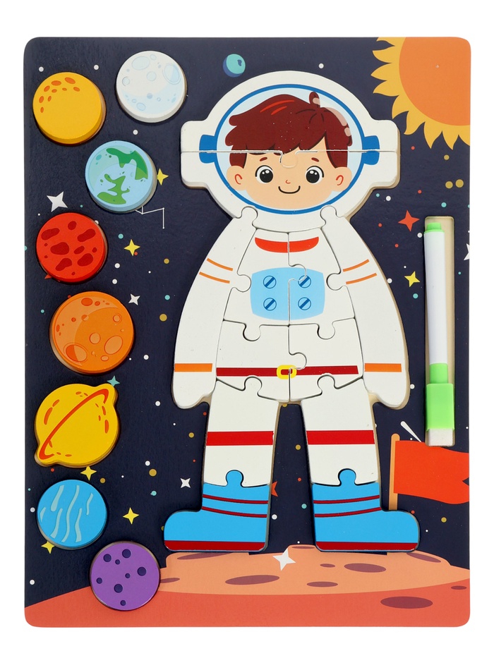 Представьте. Ваш малыш собирает астронавта, укладывает планеты на свои места и мечтает о звёздах — не подозревая, что тренирует логику, координацию и пространственное мышление. Это не просто игра. Это первый шаг в мир науки, фантазии и открытий.