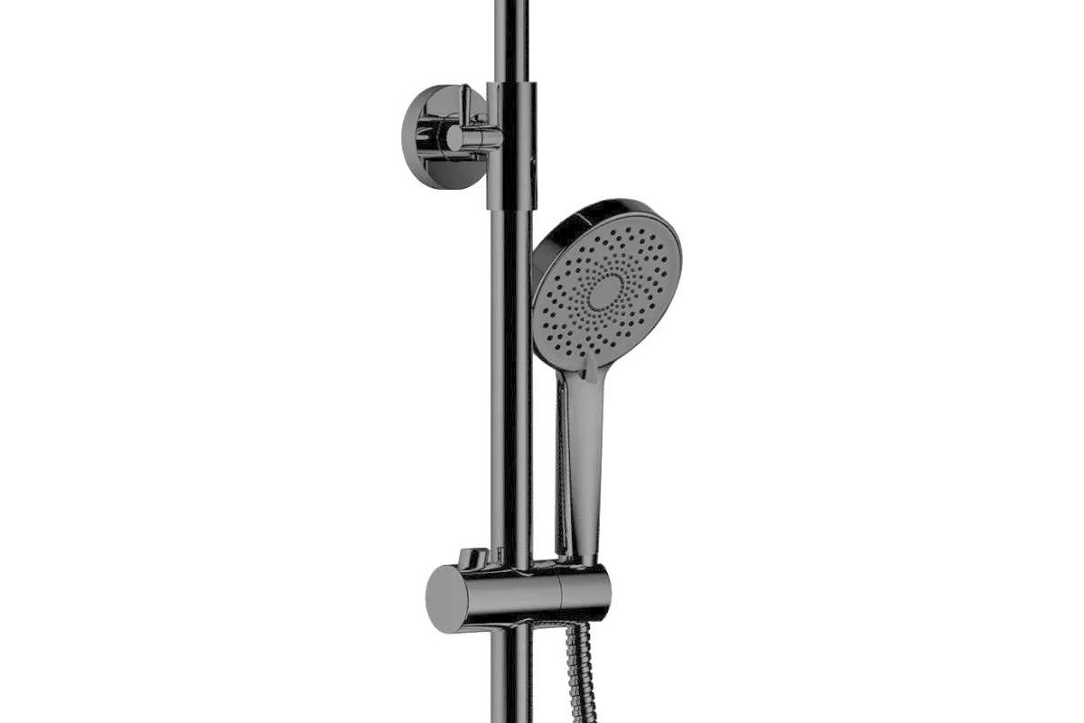 Душевая стойка Haiba HB24590-7 выполнена в современном стиле черном цвете и изготовлена из латуни. В комплект входят душевой шланг, душевая лейка, верхний душ, душевая штанга, крепление для лейки, эксцентрики. Места соединений шланга с лейкой и смесителем оснащены специальными подшипниками, которые препятствуют перекручиванию шланга.