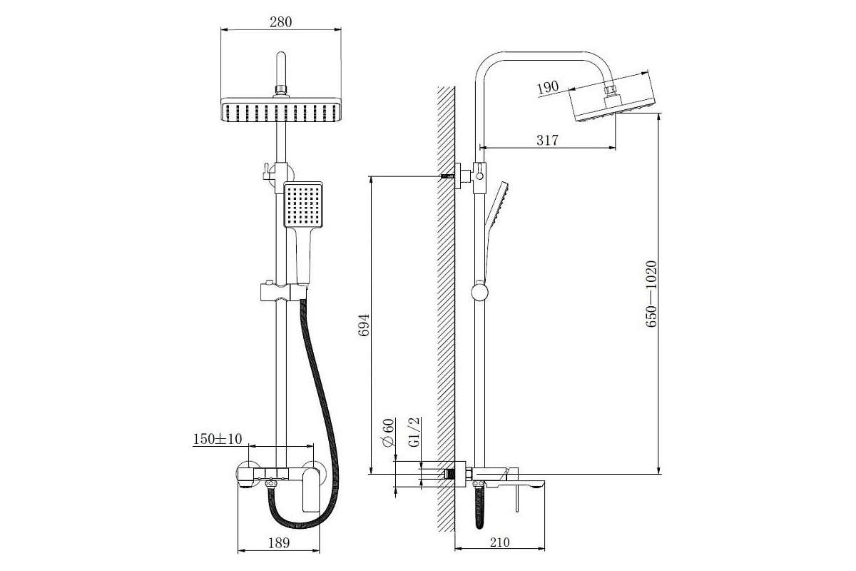 Регулируемая по высоте душевая штанга и лейка позволяют подобрать оптимальный режим душа для каждого пользователя.