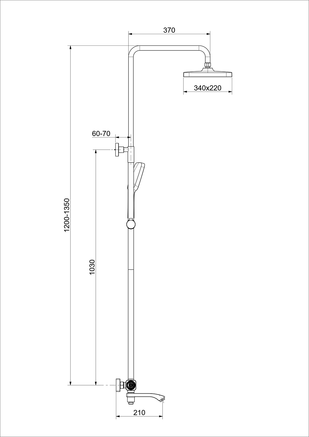 Аэратор R540.02 с функцией самоочищения обеспечивает равномерную подачу воды, смягчает поток и задерживает мелкие примеси. Душевая штанга регулируется по высоте в диапазоне 1200–1350 мм, что позволяет настроить положение верхнего и ручного душа под рост пользователей.