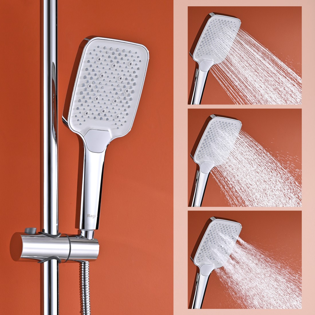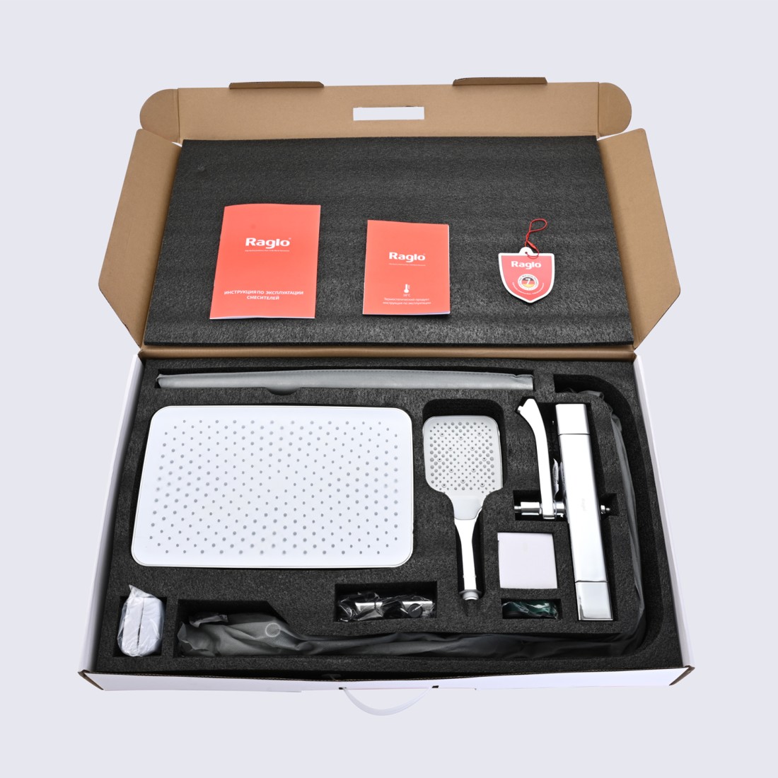 Душевая система Raglo R01.26 в хромированном исполнении — современное решение для ванной комнаты, объединяющее функциональность, надёжность и стильный дизайн. Корпус изготовлен из высококачественной латуни, что гарантирует долговечность и устойчивость к коррозии, а хромированное покрытие придаёт изделию выразительный блеск и позволяет гармонично вписать систему в интерьеры разных стилей — от классического до современного.