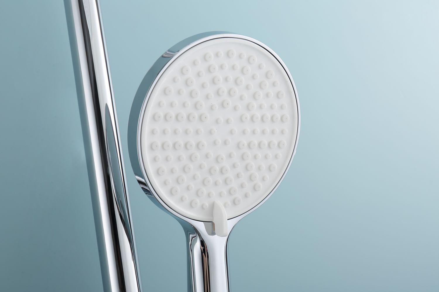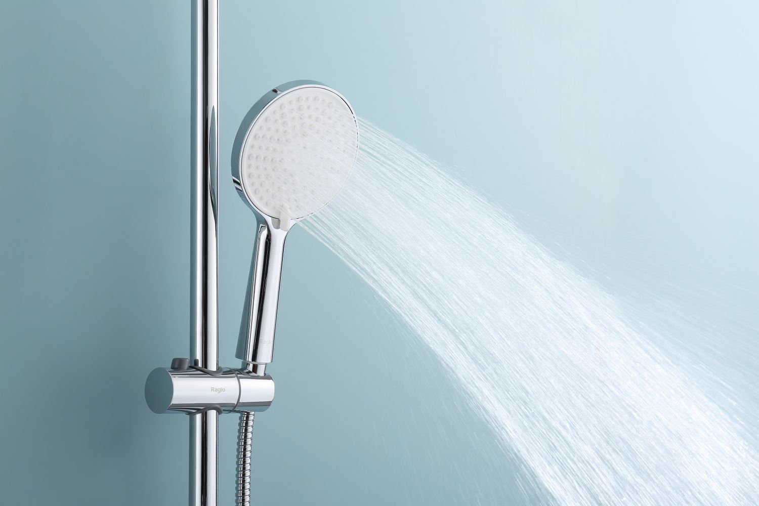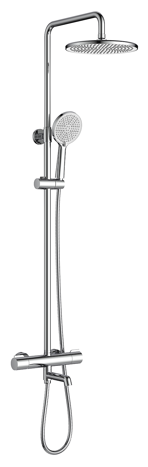 Душевая система Raglo R20.26 с термостатом в хромированном исполнении представляет собой стильное и функциональное решение для ванной комнаты. Конструкция изготовлена из высококачественной латуни, что обеспечивает её прочность, долговечность и устойчивость к коррозии, а хромированное покрытие придаёт элегантный внешний вид и защищает поверхность.