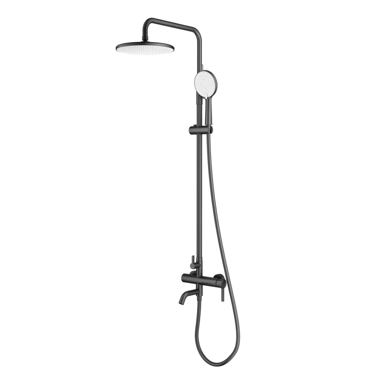 Душевая система Splenka S221.24.09 в цвете «графит» — настенная модель с однорычажным смесителем, отличающаяся лаконичным дизайном и надёжностью. Основа из латуни обеспечивает длительный срок эксплуатации. Керамический картридж позволяет плавно регулировать температуру и напор воды. В комплект входят: верхний душ прямоугольной формы (320 × 210 мм), ручной душ с тремя режимами (переключение кнопкой), металлический шланг 1,5 м, регулируемая штанга, держатель для ручного душа и монтажные элементы. Излив каскадного типа имеет поворотную конструкцию длиной 18,2 см. Система оборудована аэратором для равномерного потока воды и антиизвестковым покрытием. Высота — 151 см, вылет верхнего душа — 42 см. Стандарт подводки — G 1/2, пропускная способность — до 48 л/мин.