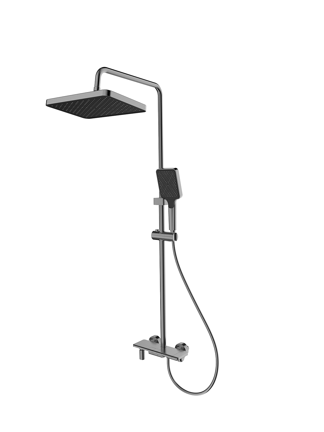Душевая система Splenka S52.24.09 в графитовом цвете — современное решение для ванной комнаты, объединяющее эргономику, надёжность и сдержанный дизайн. Корпус выполнен из высококачественной латуни, что обеспечивает долговечность и устойчивость к коррозии, а матовое графитовое покрытие придаёт изделию благородный оттенок и позволяет органично вписать систему в интерьеры в стиле минимализм, лофт или современный модерн.