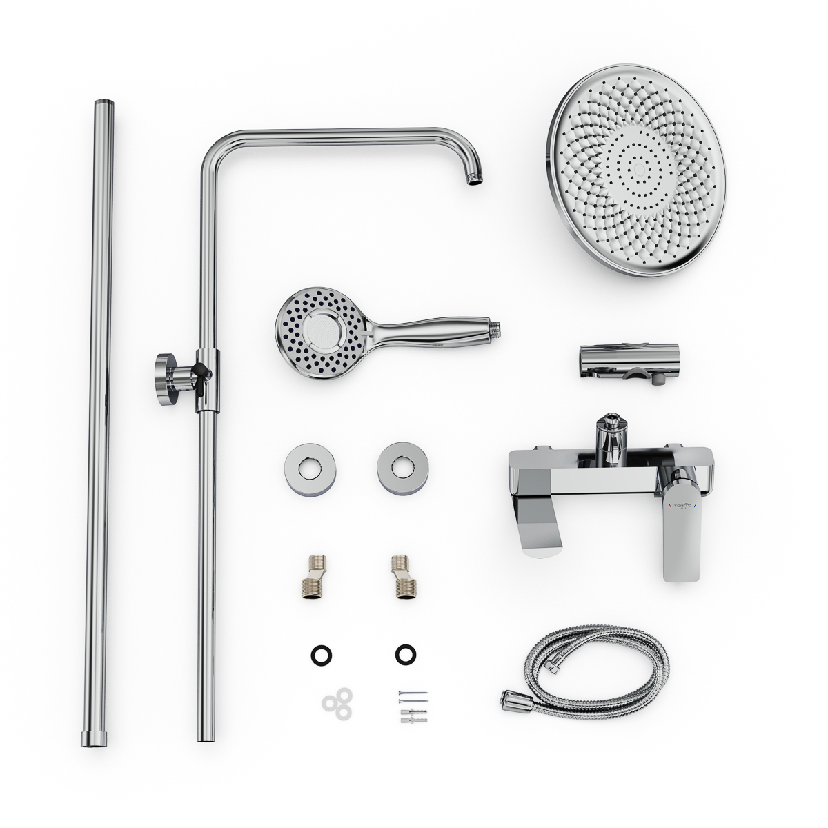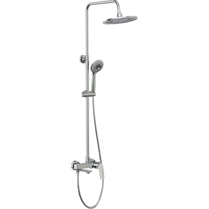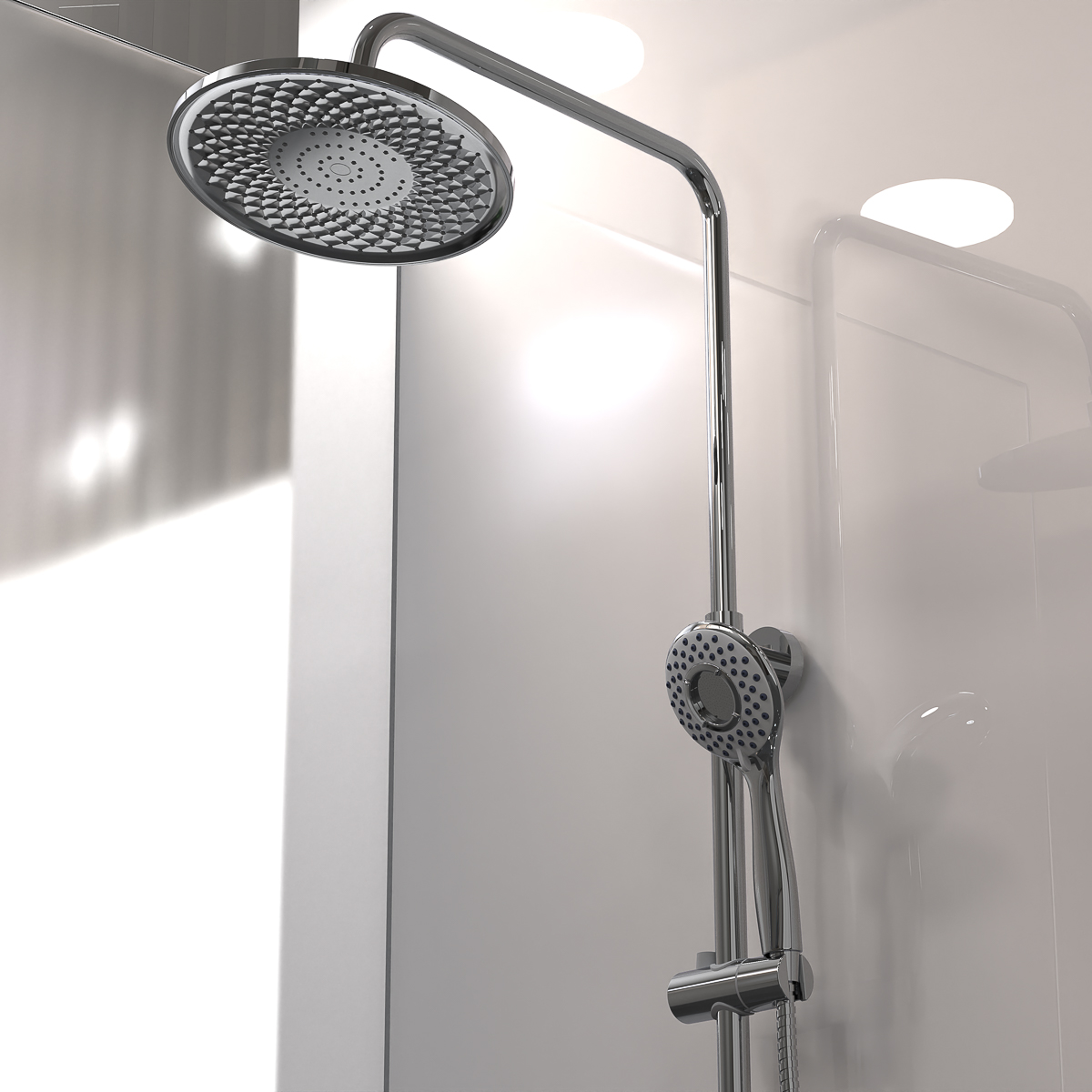 Стойка регулируется по высоте, чтобы каждый смог легко воспользоваться душем. В комплект входит круглая душевая лейка, работающая в трех режимах.
