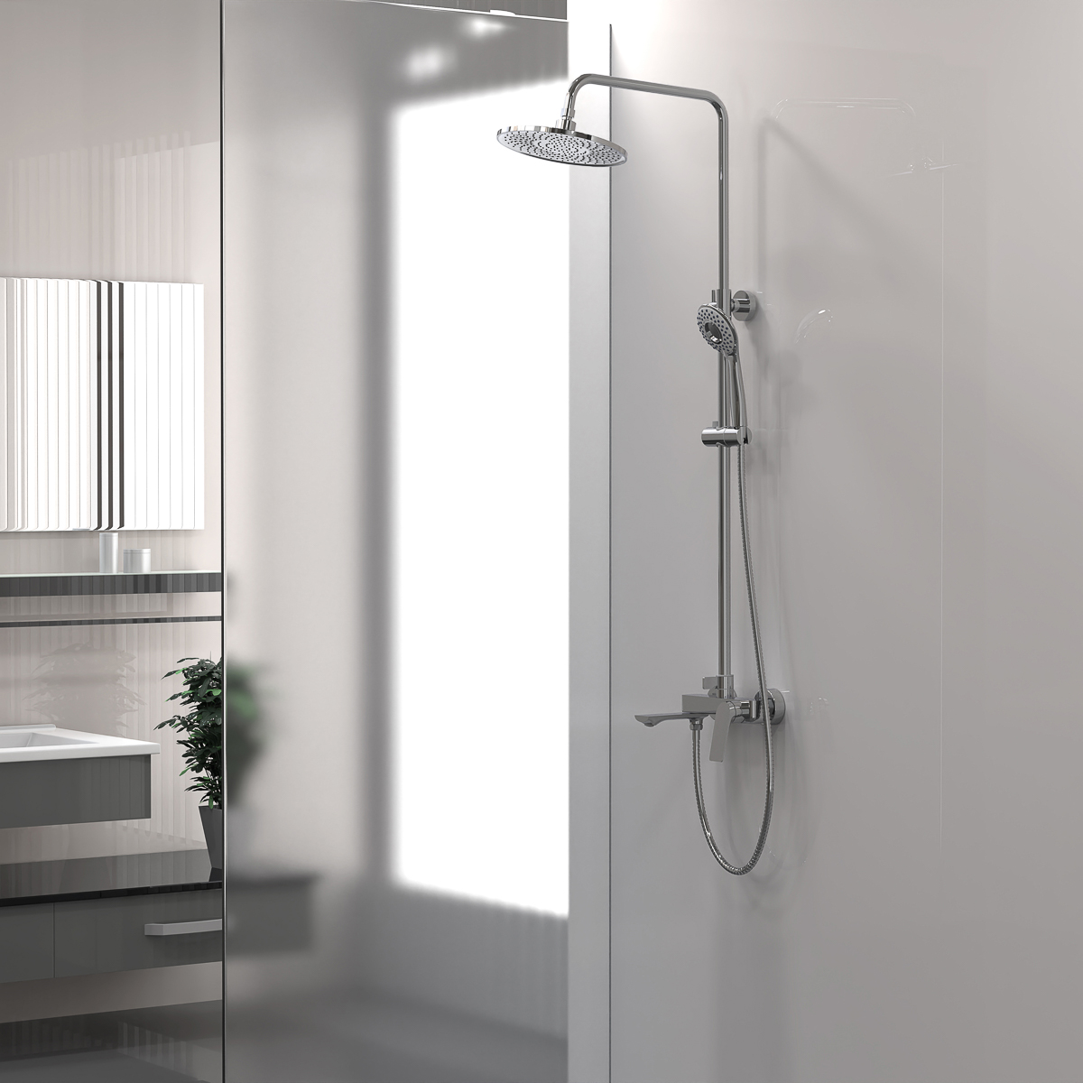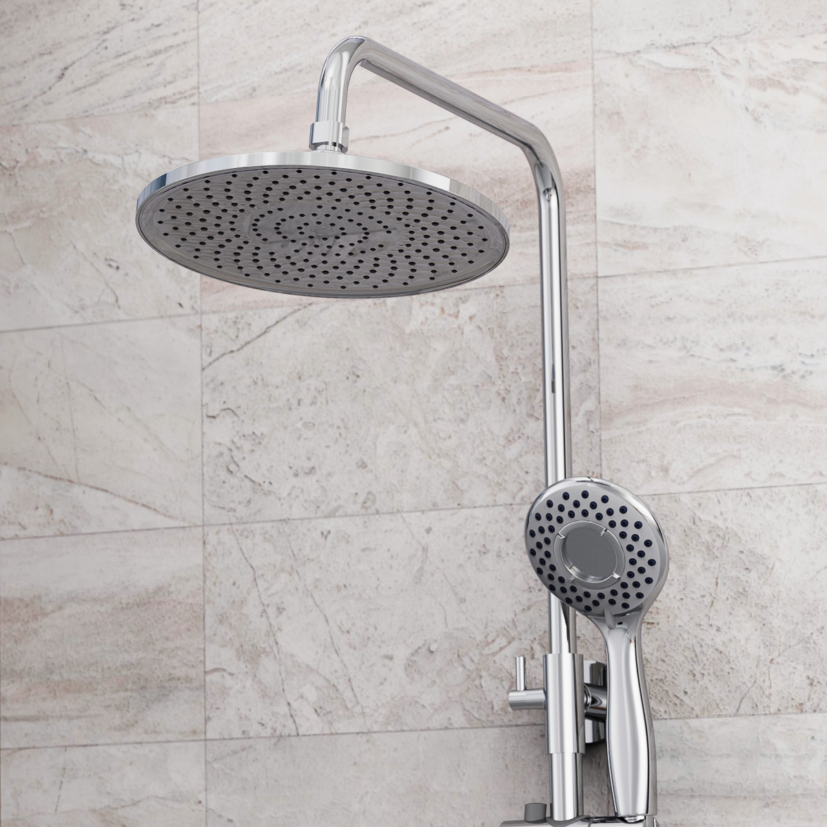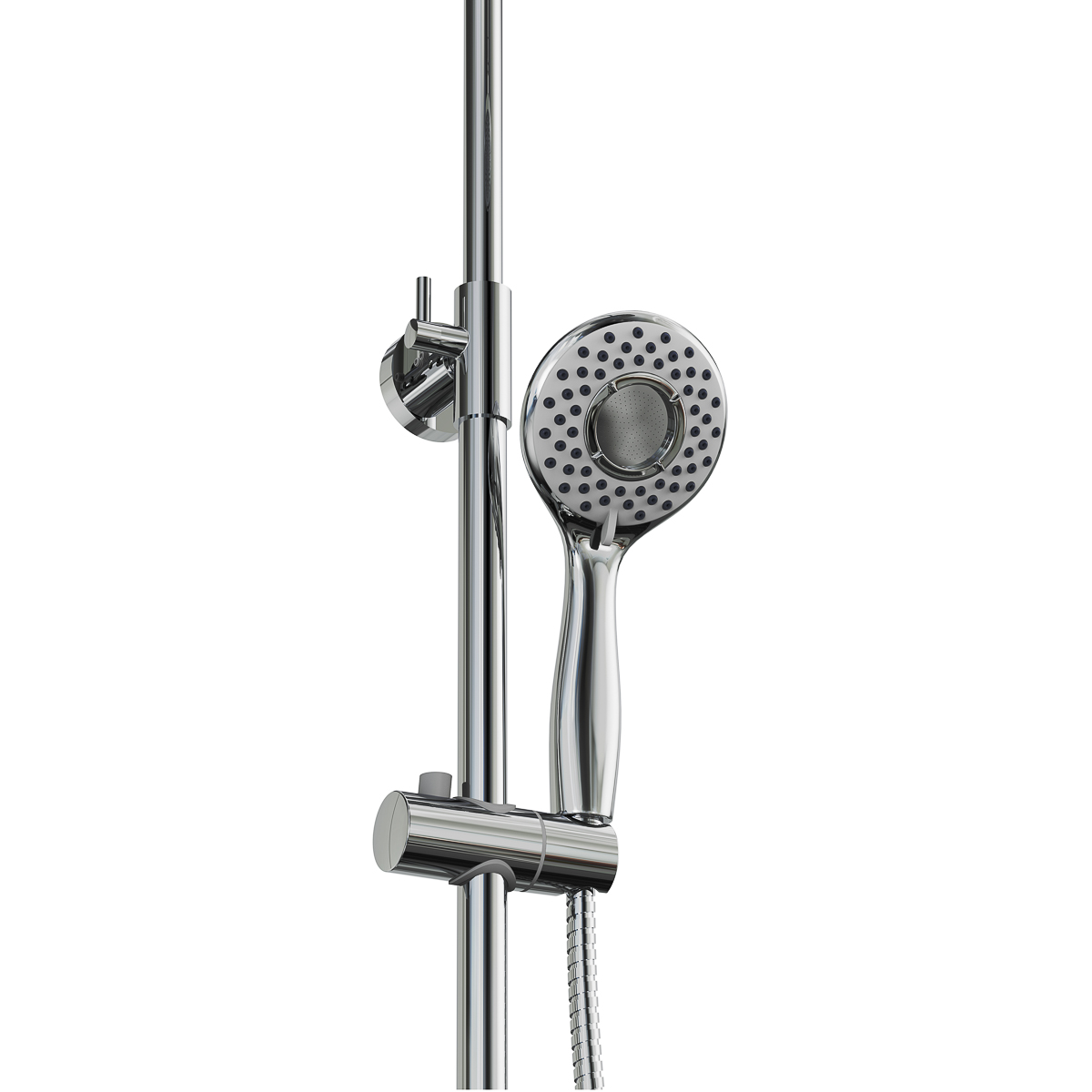 Стойка регулируется по высоте, чтобы каждый смог легко воспользоваться душем. В комплект входит круглая душевая лейка, работающая в трех режимах.