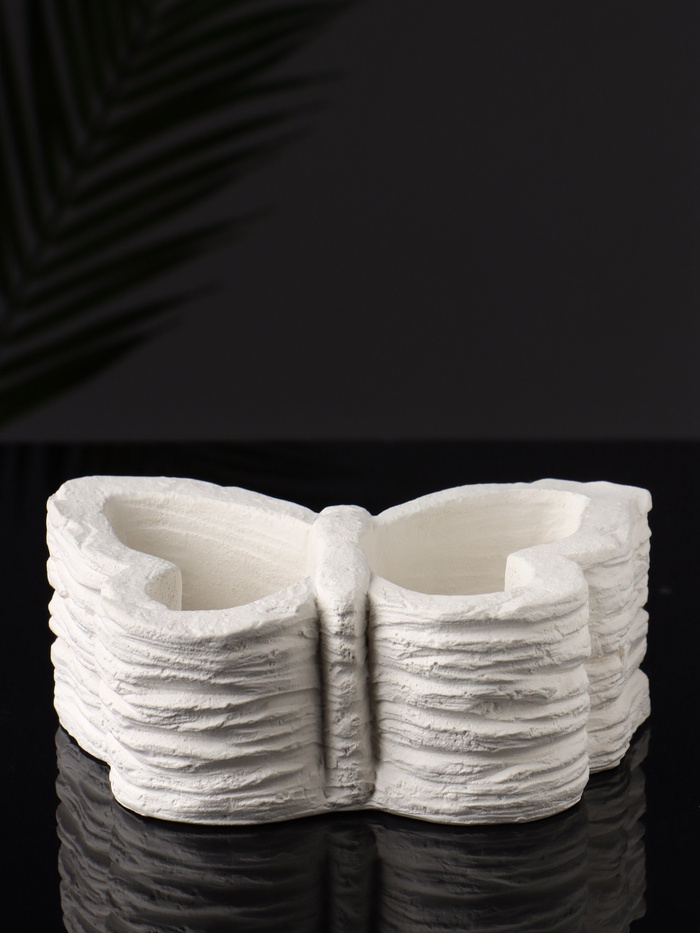 Представляем изящное кашпо в форме бабочки, которое превратит ваш интерьер в пространство, наполненное лёгкостью и грацией. Изготовленное из прочного гипса, это изделие сочетает в себе элегантный дизайн и надёжность. Белоснежный цвет добавляет универсальности, позволяя гармонично вписать его в любой стиль — от минимализма до классики. Компактные размеры (13×9×6 см) делают его идеальным для размещения на столе, полке или подоконнике.