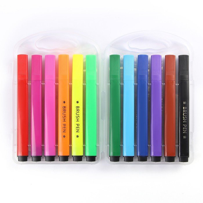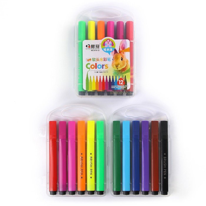 Фломастеры 12 цветов в пластиковом пенале,треугольные,толстые,вентилируемый колпачок,МИКС