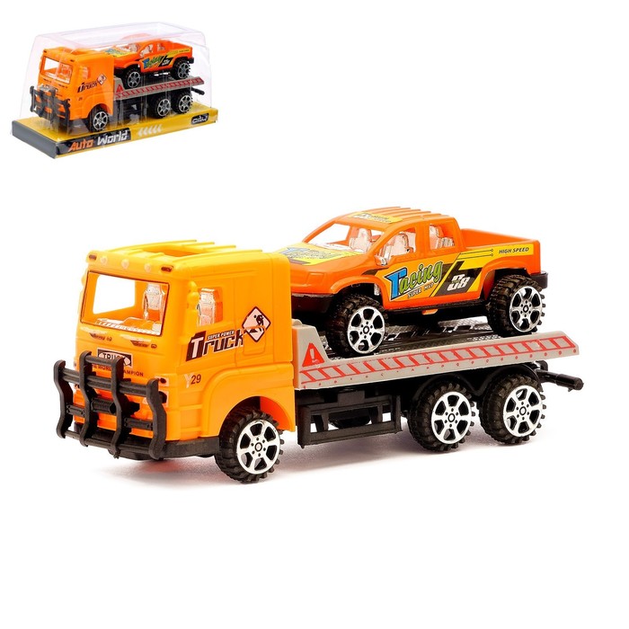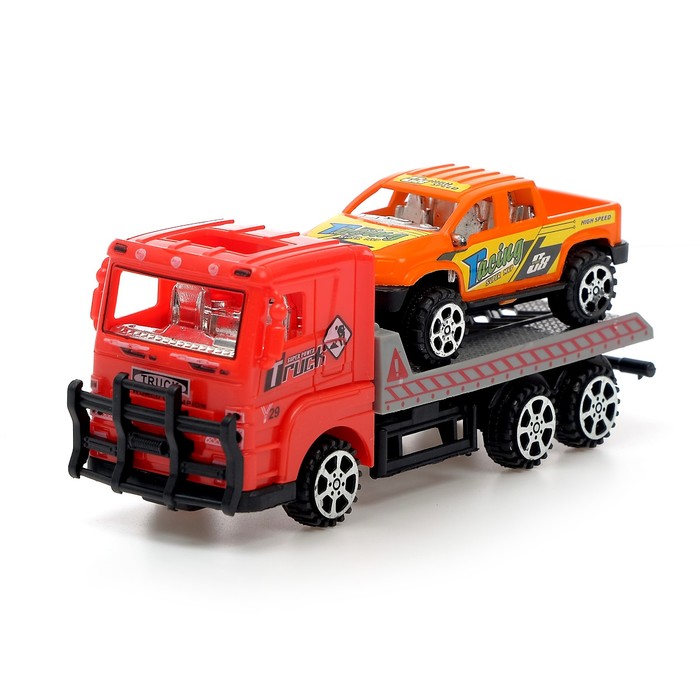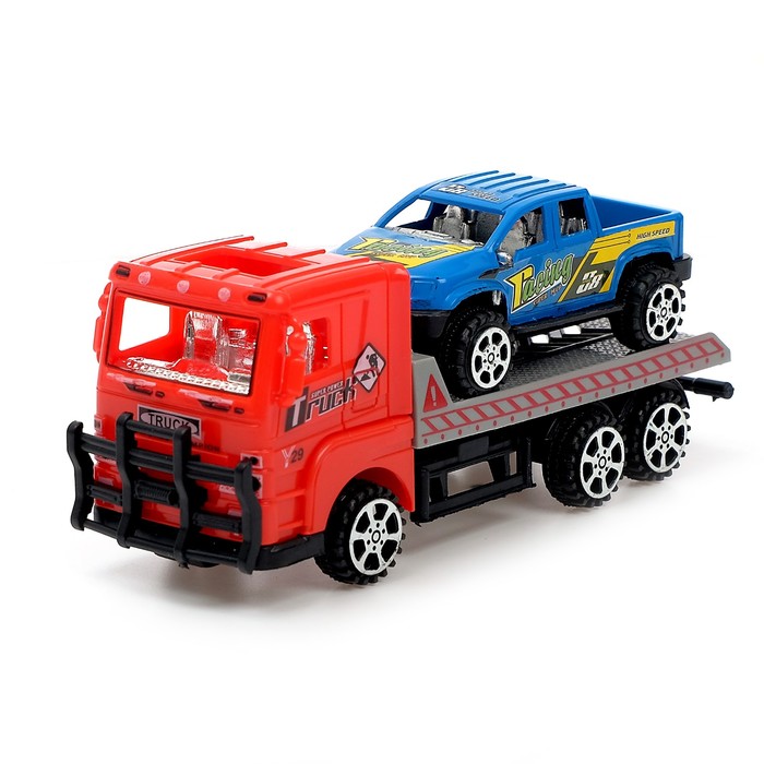Грузовик инерционный "Эвакуатор" с машиной, цвета МИКС.