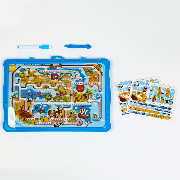 Двусторонняя игровая доска «Сказочный остров» — это универсальный набор для развития ребёнка от 3 лет. С одной стороны находится увлекательный магнитный лабиринт, а с другой — удобная маркерная доска для рисования и заметок. Комплект включает всё необходимое: магнитную палочку, маркер и яркие наклейки для украшения лабиринта.