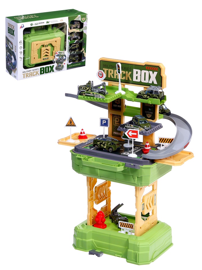 Этот необычный игровой набор станет отличным подарком для маленьких любителей военной техники. Превратите стильный чемодан в многоуровневую парковку с захватывающими элементами и деталями военной тематики, создавая незабываемые игровые сценарии.
