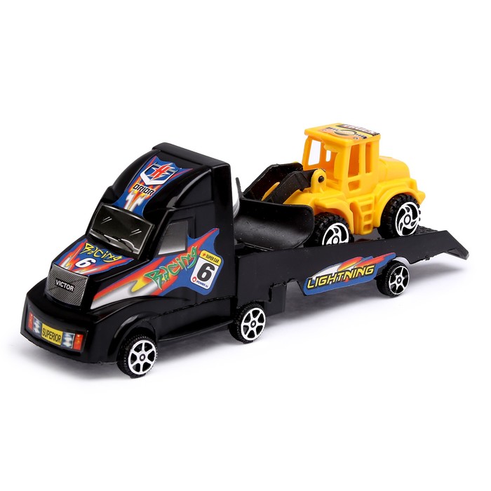 «Эвакуатор» — это первоклассный набор для трудолюбивого малыша. В комплект входит сразу два технических средства: тягач с инерционным механизмом и трактор с глубоким поднимающимся ковшом. Завершите строительно-ремонтные работы, а затем закатите погрузчик на широкую платформу. Теперь можно выдвигаться к следующему объекту!