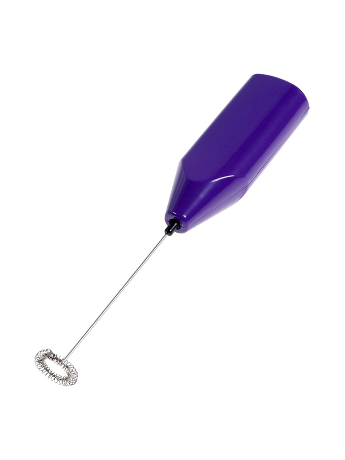 Погружной капучинатор в фиолетовом пластике позволяет быстро взбивать молоко и сливки для кофе, латте или капучино. Компактный и лёгкий, он удобно лежит в руке и работает от двух батареек типа AA, обеспечивая полную свободу использования без проводов.