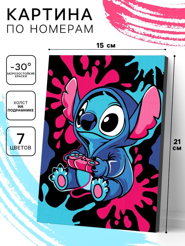 Картина по номерам на холсте с подрамником, 15×21 см, «Стич»