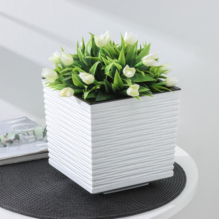 Кашпо со вставкой 3л "Стиль", цвет мрамор
