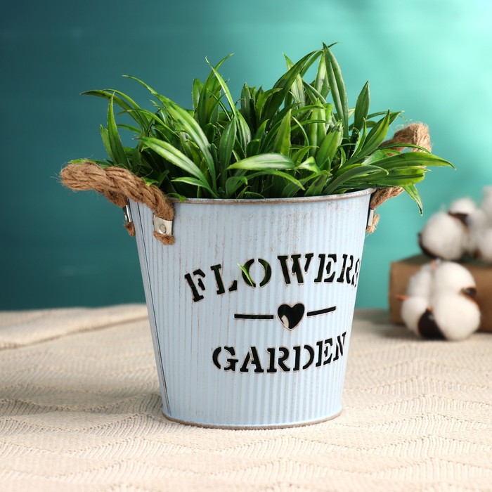 Кашпо "Ведерко цветочный сад" голубое, 13х13х12см