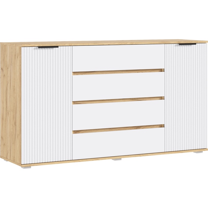 Комод 2 двери 4 ящика Марвэл 1600, Браш вайт/Дуб крафт