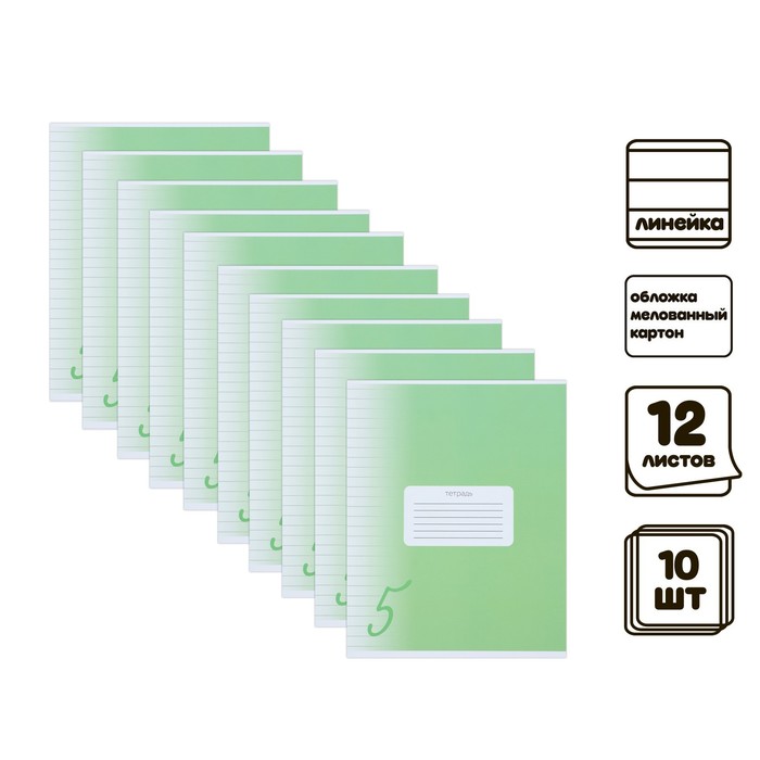 Компл тетр из 10 шт 12л лин Пятерка, обл мел карт, ВД-лак, блок офсет, ЗЕЛЕНАЯ (7770411)
