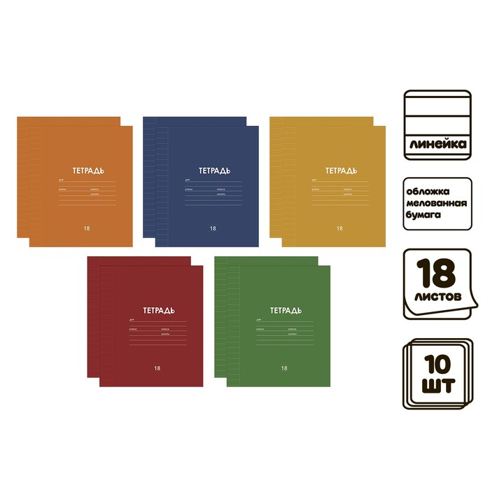 Компл тетр из 10шт 18л лин Однотонная Классика Линовка,обл мел бум+ВД,бл офсет (7770464)