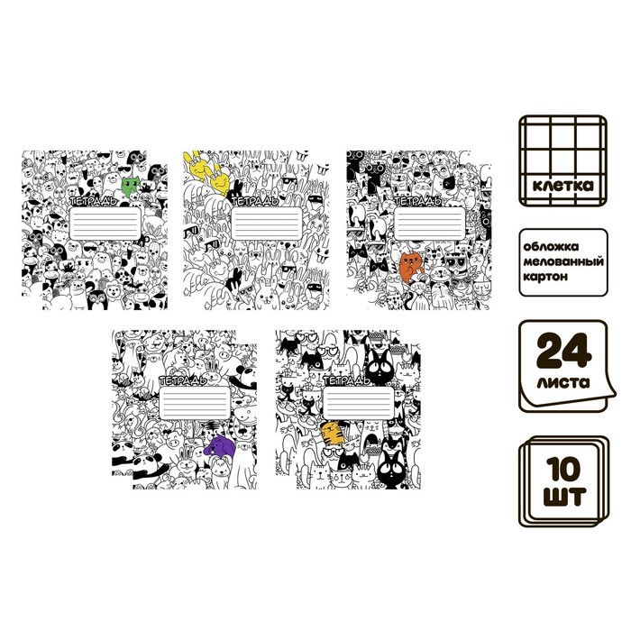 Компл тетр из 10шт 24л кл Животный микс,мел карт,ВД-лак,бл№2 (9492415)