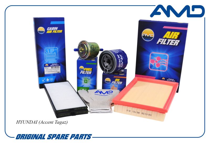 Комплект фильтров AMD.SETF136 (масляный 2630035503 + воздушный 2811322600 + салонный 976171C000 + топливный 3191125000). Применимость: HYUNDAI (Accent Tagaz).
