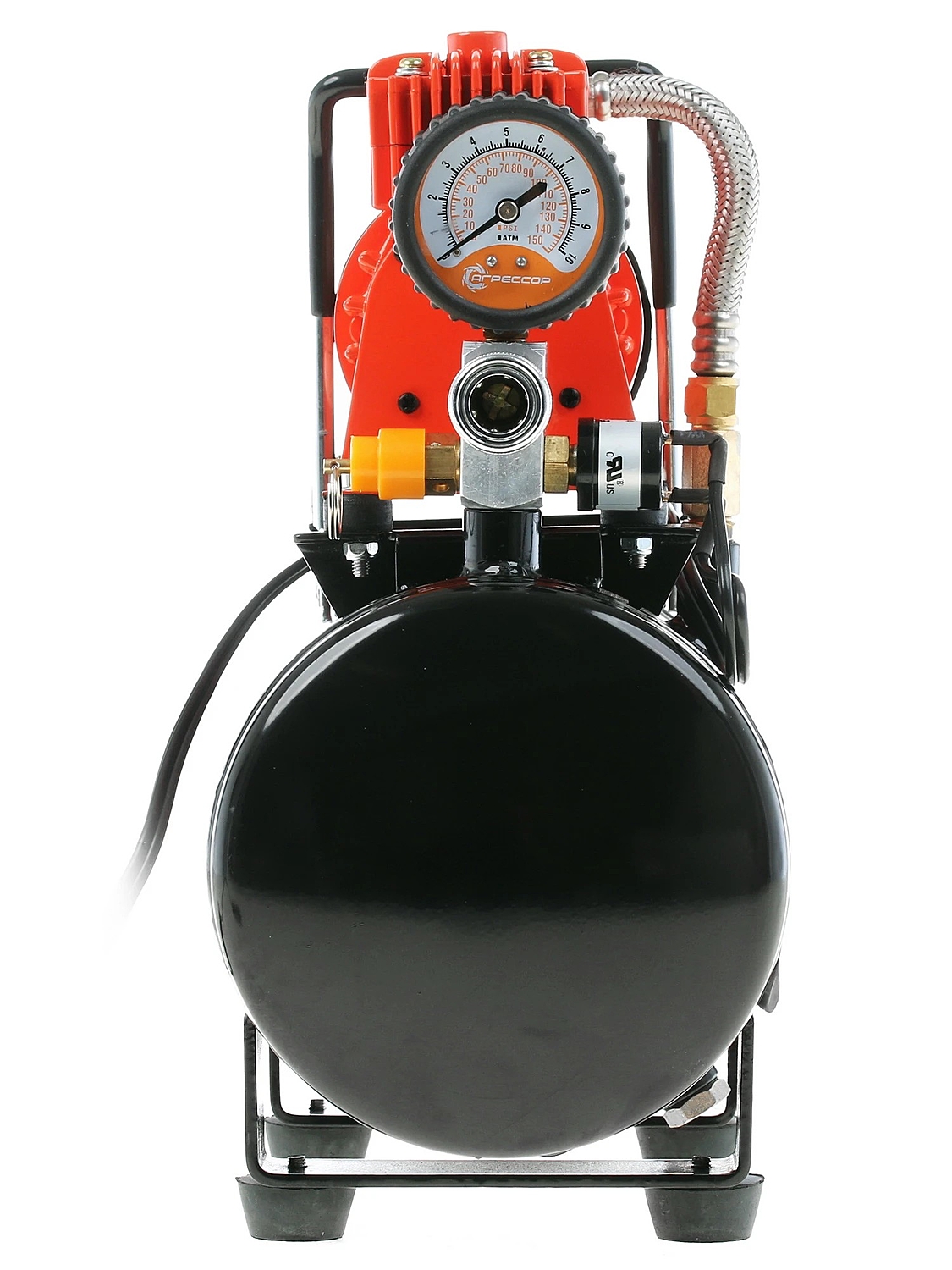 Корпус компрессора изготовлен из металла, цельнометаллический поршневой насос не имеет шарнирных соединений, уплотнительное кольцо поршня сделано из жаропрочного тефлона. Такая надёжная и неприхотливая конструкция обеспечивает долгий срок службы.