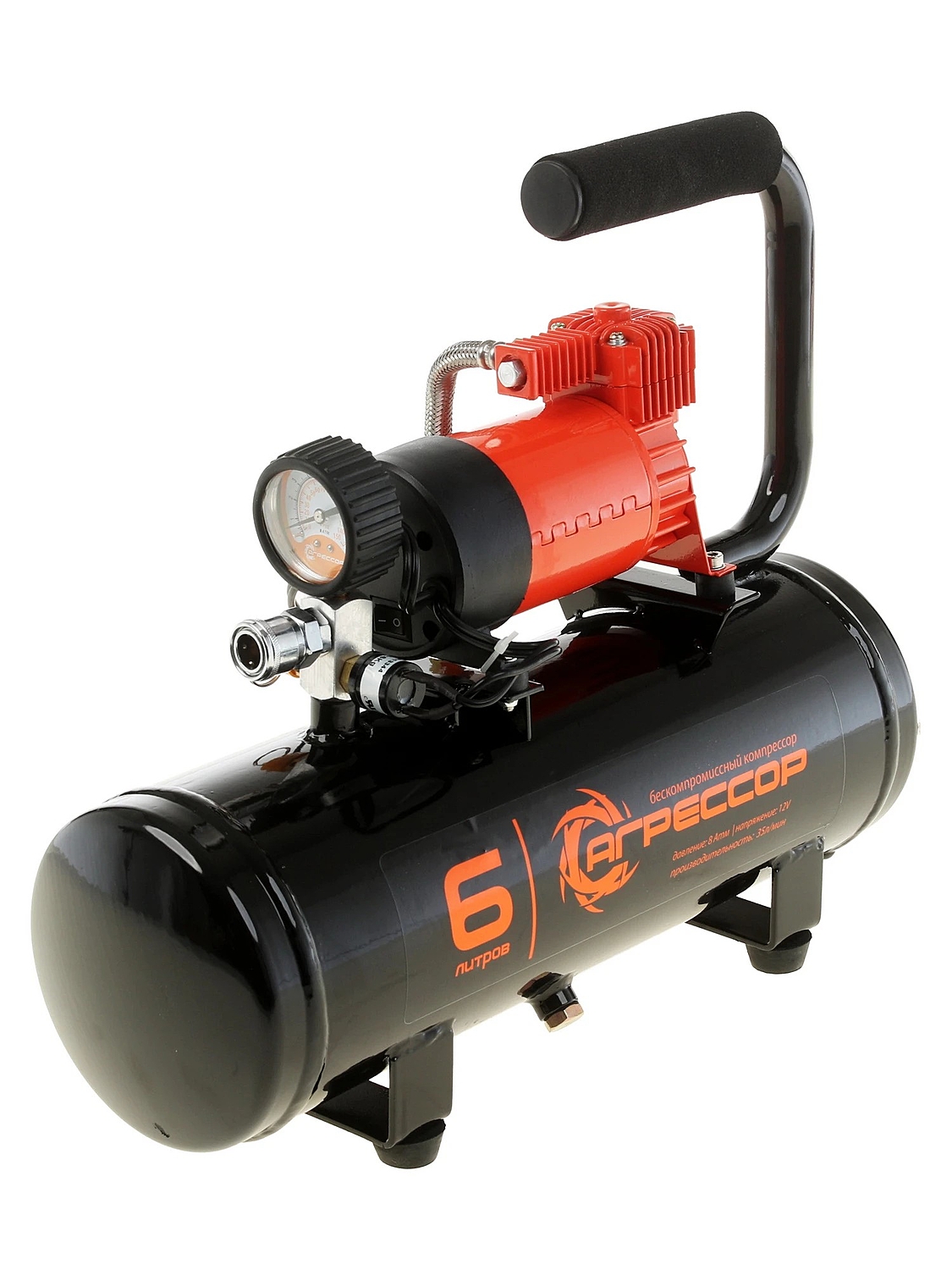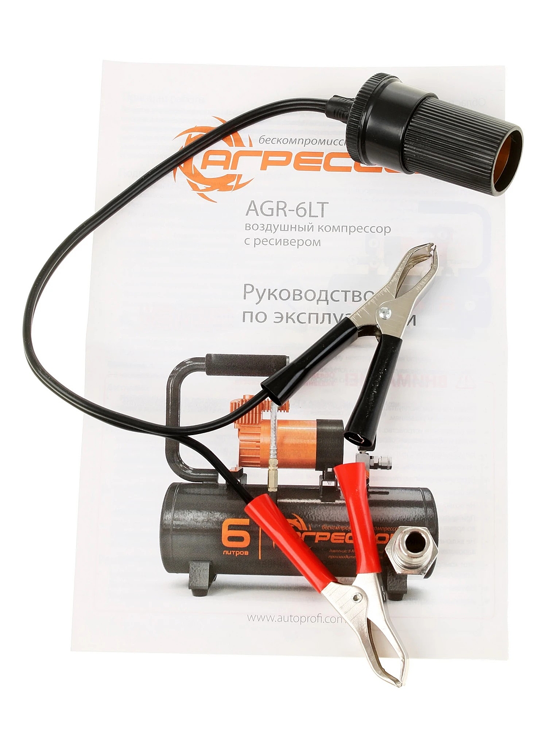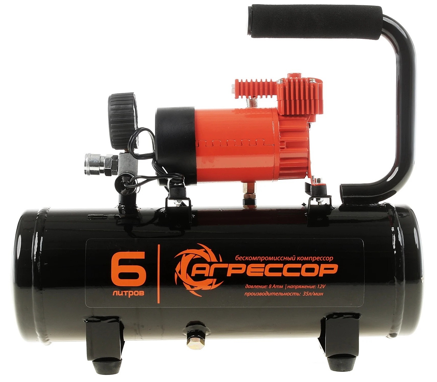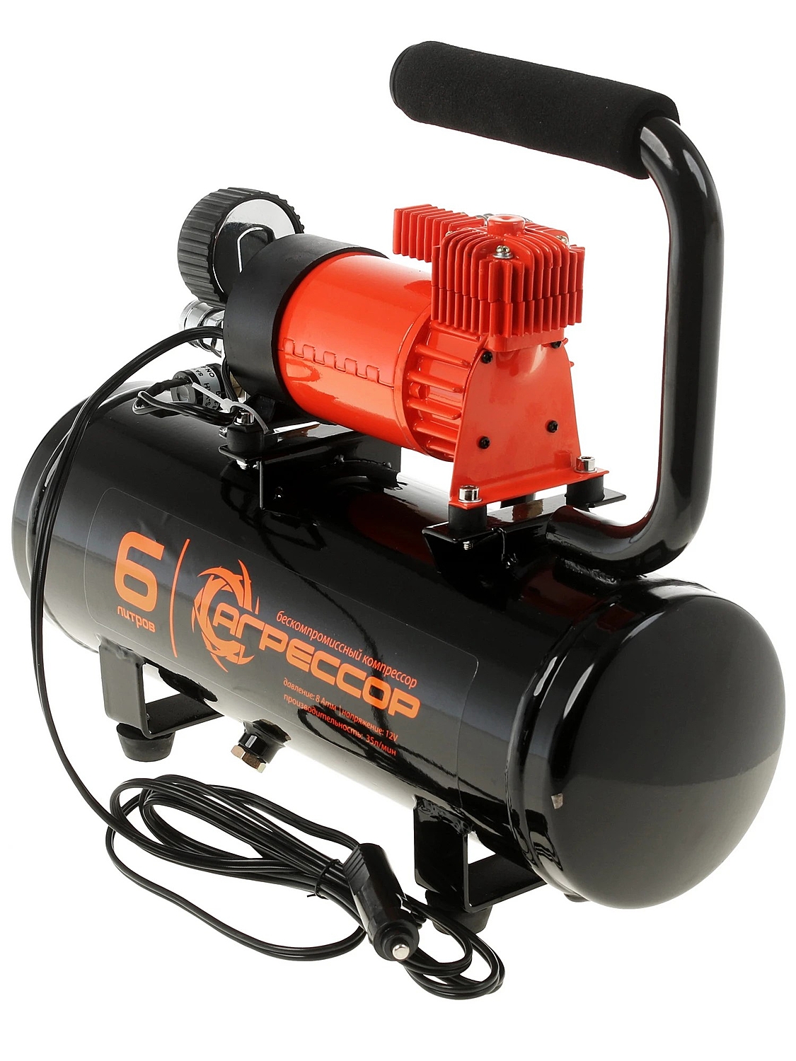 Автомобильный компрессор Агрессор AGR-6LT с ресивером предназначен для накачивания шин легковых автомобилей и кроссоверов. Имеет производительность 35 л/мин и создаёт максимальное давление 8 Атм. Подключается к розетке прикуривателя и к клеммам АКБ через переходник из комплекта поставки.