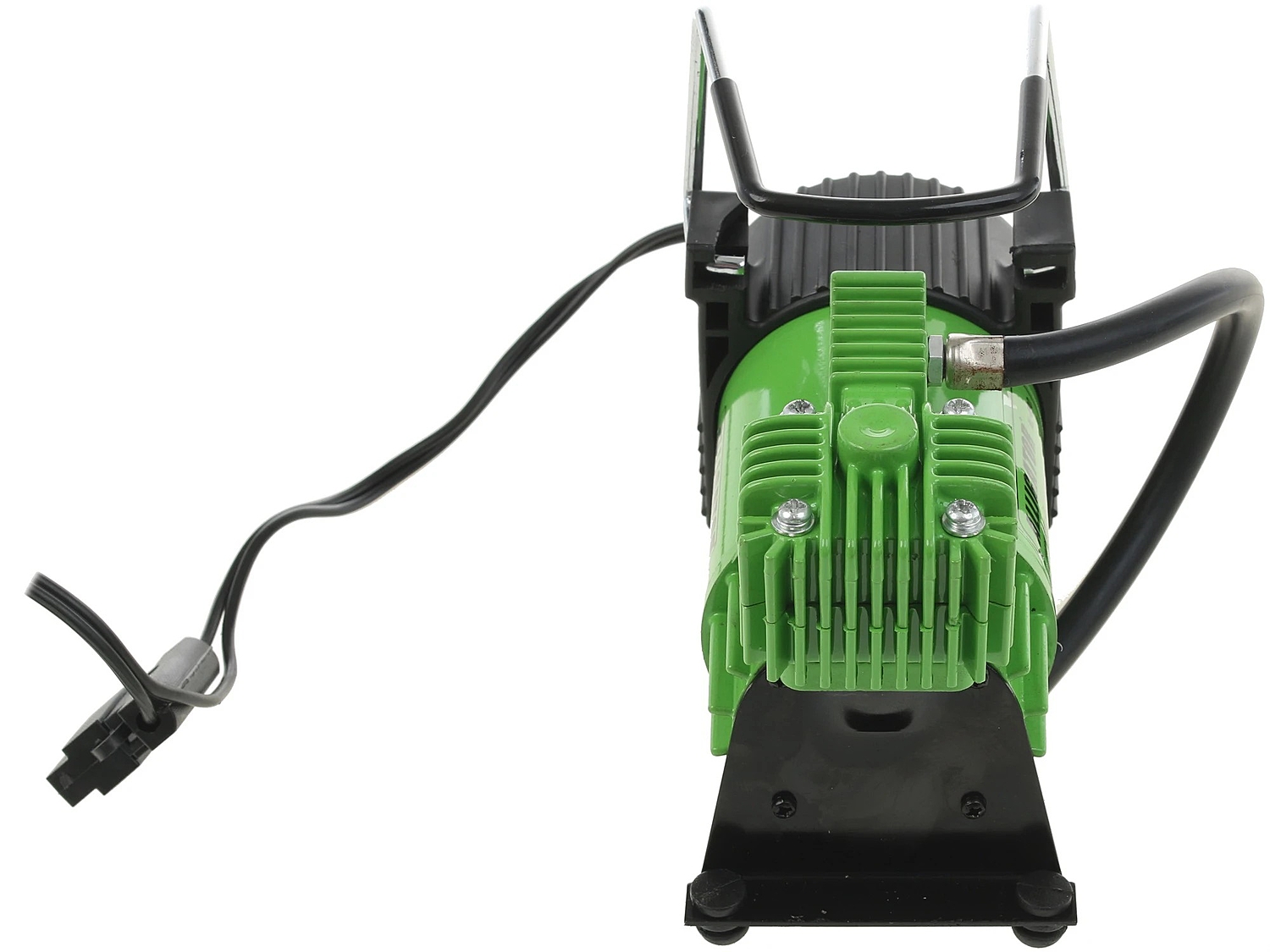 Компрессор работает при температуре от -20 до +50 °С. Питание автокомпрессора осуществляется от аккумулятора автомобиля (зажимы с плавким предохранителем идут в комплекте). Вместе с компрессором покупатель получает удобную сумку для хранения и переноски.