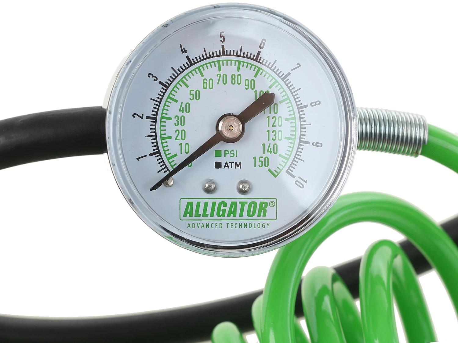 Alligator AL-400 — универсальный поршневой компрессор нового поколения с защитой от перегрева. Поршень диаметром 30 мм выдает производительность 40 л/мин при мощности электромотора в 180 Вт. Максимальное давление компрессора AL-400 — 10 АТМ. Корпус модели сделан из высококачественного металла.