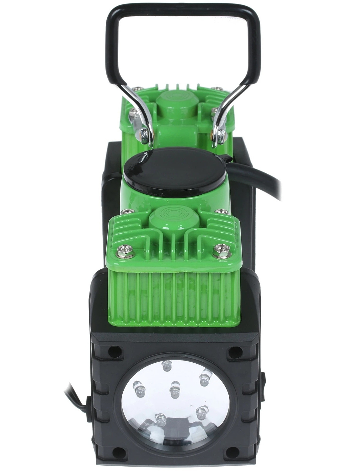 Диаметры поршней — 30 мм. Производительность 55 л/мин будет достаточной даже для накачивания шин крупного внедорожника, легкого грузовика, пикапа или микроавтобуса. Мощность электродвигателя составляет 220 Вт, а максимальное давление компрессора — 10 АТМ. Встроенный высокоточный манометр измеряет давление в ATM и PSI. Компрессор работает при температуре от -20 до +50 °С.