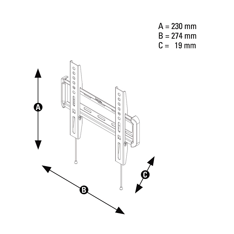 Кронштейн для телевизора HAMA H-118632 устанавливается на стену и фиксировано удерживает телевизор с диагональю от 19 до 46 дюймов. Максимальная нагрузка на конструкцию составляет 25 кг. Расстояние от прибора до стены минимально - 19 мм. Имеются специальные пластиковые накладки, которые украшают всю конструкцию.
