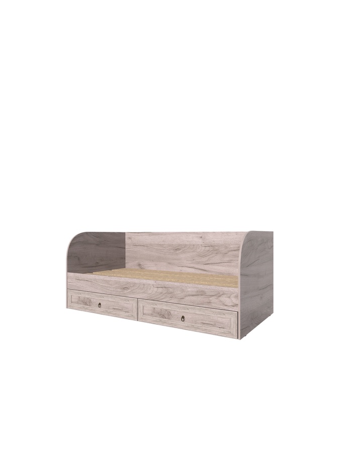 Функциональное и стильное решение для детской комнаты. Кровать-тахта выполнена в благородном оттенке дуб серый крафт с выразительной древесной текстурой, которая привносит в интерьер природную гармонию и современный характер. Декоративная фрезеровка добавляет изысканности и визуального интереса.