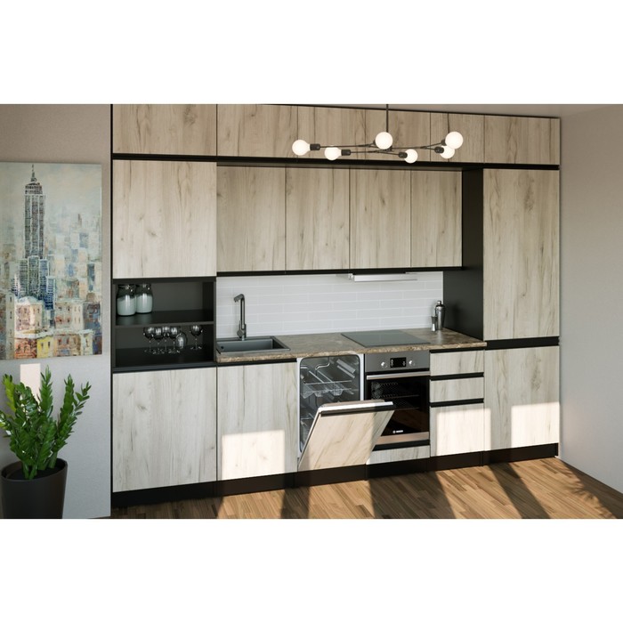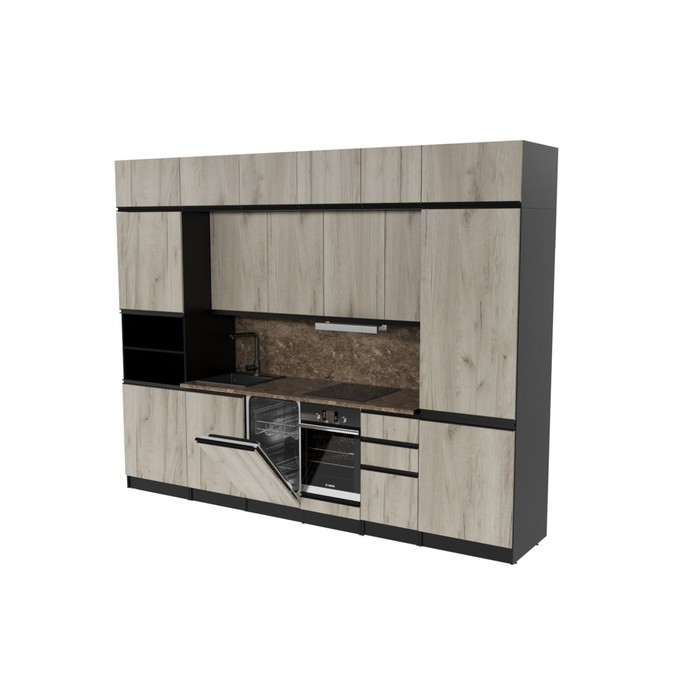 Кухня трёхуровневая под потолок «Равенна люкс», со столешницей, 3000×600 мм, цвет венге/алмабра тёмная/дуб браун