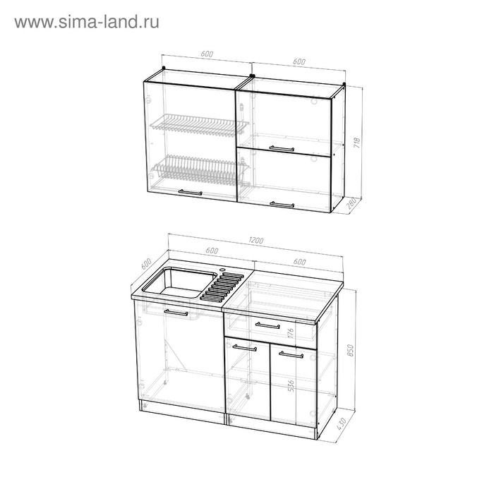 Кухонная мойка, стеновая панель, решётка для посудосушителя, приобретаются отдельно.