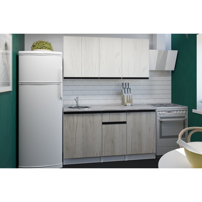 Кухонный гарнитур Паола нормал 1500х600 Белый/Кантри/Дуб грей, Дуб браун