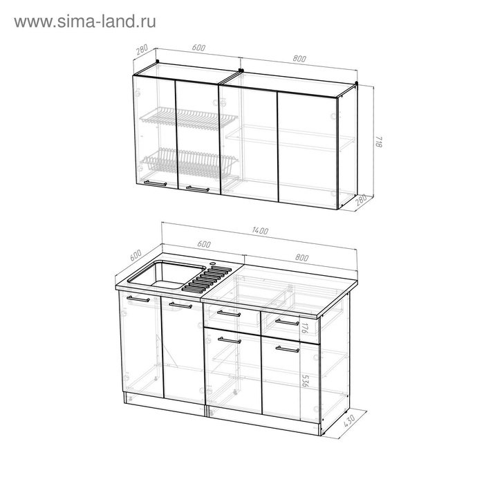 • Кухонная мойка, стеновая панель, посудосушитель в комплект не входят.