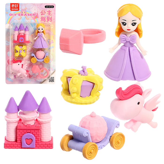 Игровой набор ластиков «Принцесса» - это интересное дополнение для игр с куклами и пупсами. В наборе 6 ярких ластиков, каждый из которых выполнен в виде атрибутов принцессы, что делает игру увлекательнее.