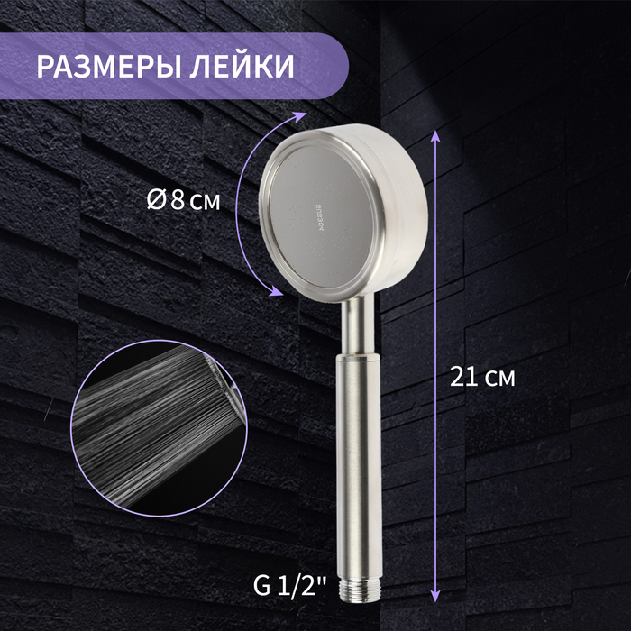 Лейка для душа ZEIN Z059, 1 режим, d=80 мм, микроточки, нержавеющая сталь, сатин