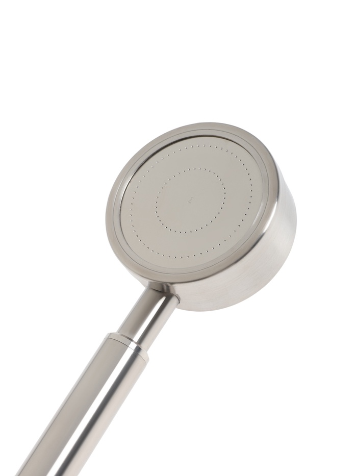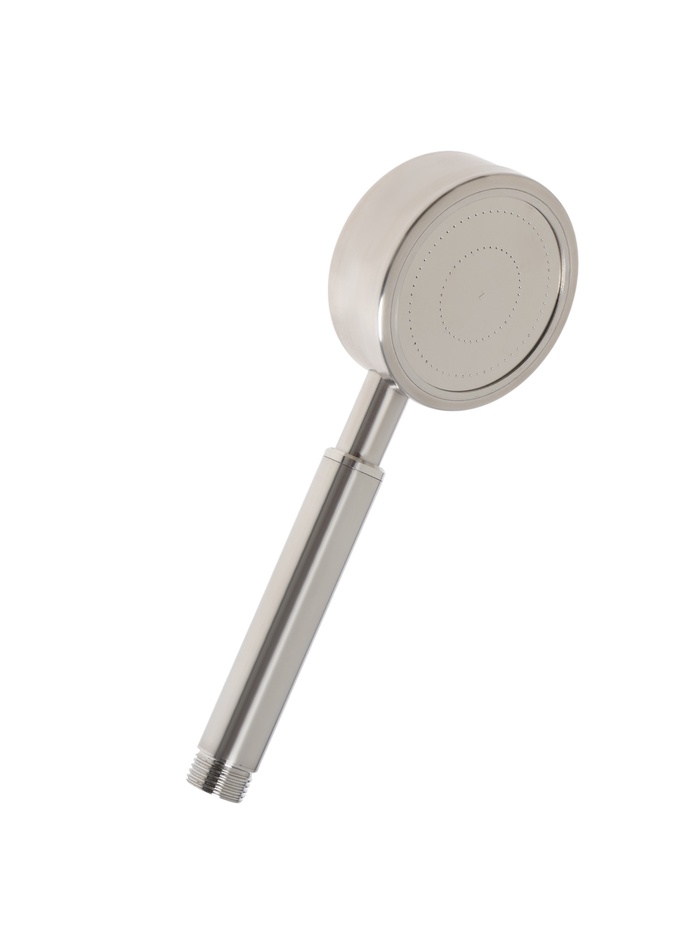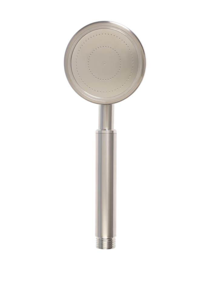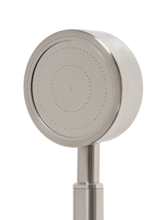 Ручная лейка для душа «Zein Z059» — круглая душевая насадка диаметром 80 мм из сатинированной нержавеющей стали.