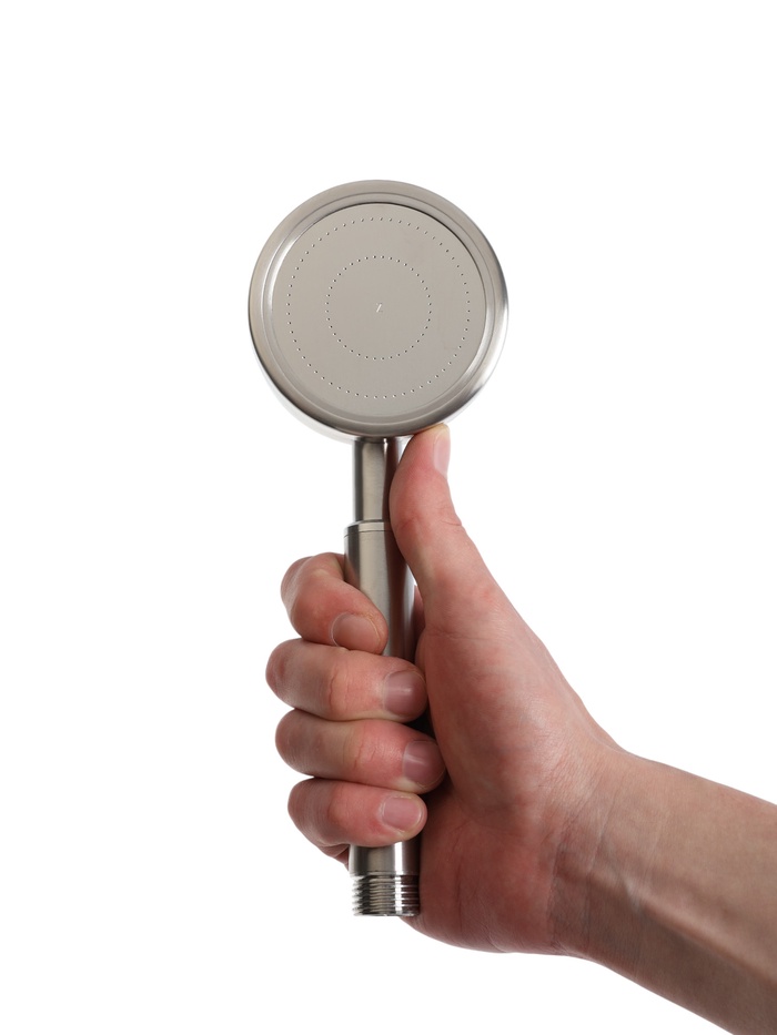 Лейка подключается к стандартному душевому шлангу для ручного использования или фиксации на держателе.