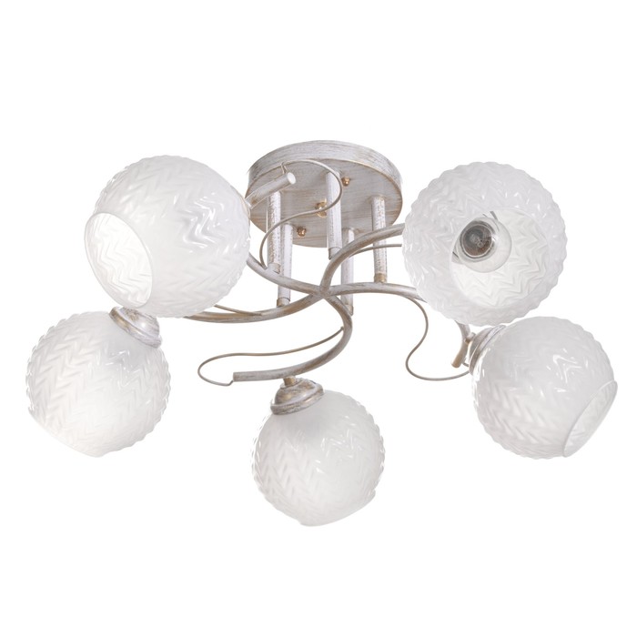 Потолочная люстра с пятью плафонами предназначена для основного освещения жилых помещений. Бело-золотое исполнение и классическая форма делают модель универсальной для интерьеров с нейтральной или тёплой цветовой гаммой.