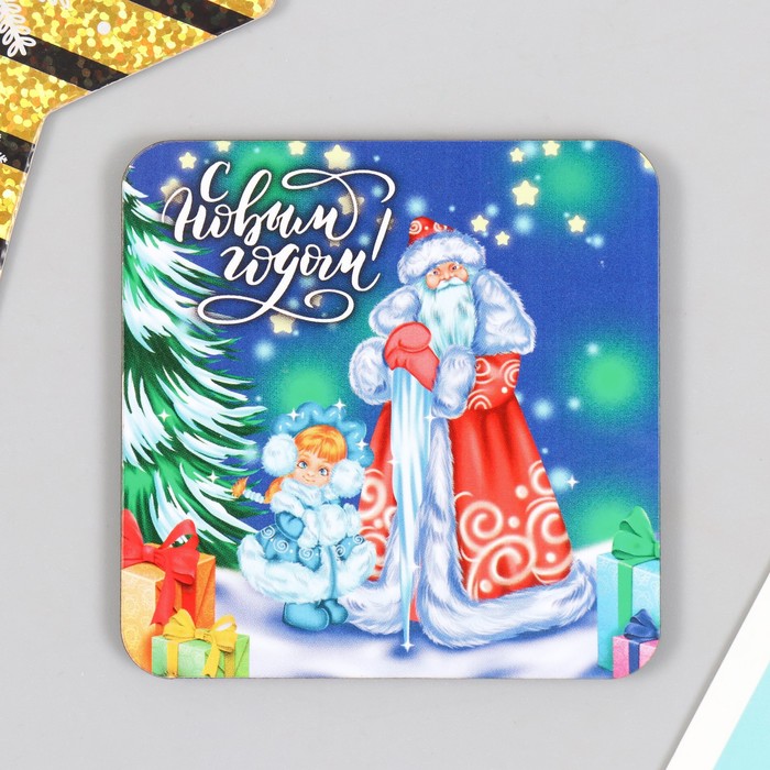 Магнит дерево "Дед Мороз и Снегурочка" 7х7 см